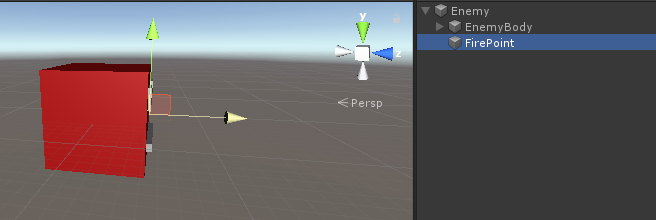 - Dla Fire Point utwórz nowy GameObject, przenieś go do żywej instancji wroga i umieść nieco przed instancją, a następnie przypisz go do zmiennej Fire Point:
