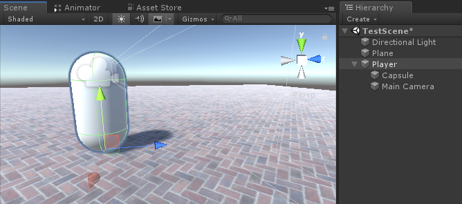 - Utwórz nową kapsułę (obiekt gry -> obiekt 3D -> kapsuła) i przenieś ją do obiektu "Player"