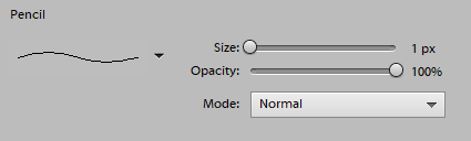 - Wybierz narzędzie Ołówek i ustaw jego rozmiar na 1 px i krycie na 100%