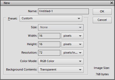 - Ustaw szerokość i wysokość na coś małego (w moim przypadku zacznę od zrobienia płytki naziemnej, więc szerokość i wysokość są ustawione na 16)