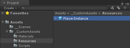 - Zapisz PlayerInstance w Prefab i przenieś go do folderu o nazwie Resources (jeśli nie ma takiego folderu, utwórz go). Ten krok jest niezbędny, aby móc tworzyć obiekty dla wielu graczy w sieci.