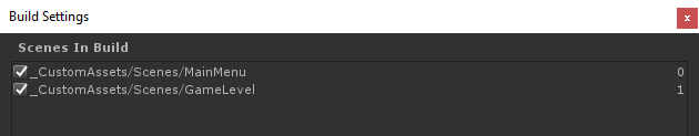 - Dodaj zarówno MainMenu, jak i GameLevel do ustawień kompilacji.