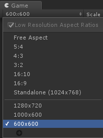 - Zmień rozdzielczość widoku gry, aby szerokość i wysokość były równe (np. 600px x 600px)
