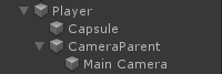 - Utwórz nowy obiekt GameObject i nadaj mu nazwę "CameraParent" i przenieś go do obiektu "Player", zmień jego położenie na (0, 1.64, 0)