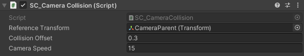 }- Dołącz skrypt SC_CameraCollision do kamery głównej